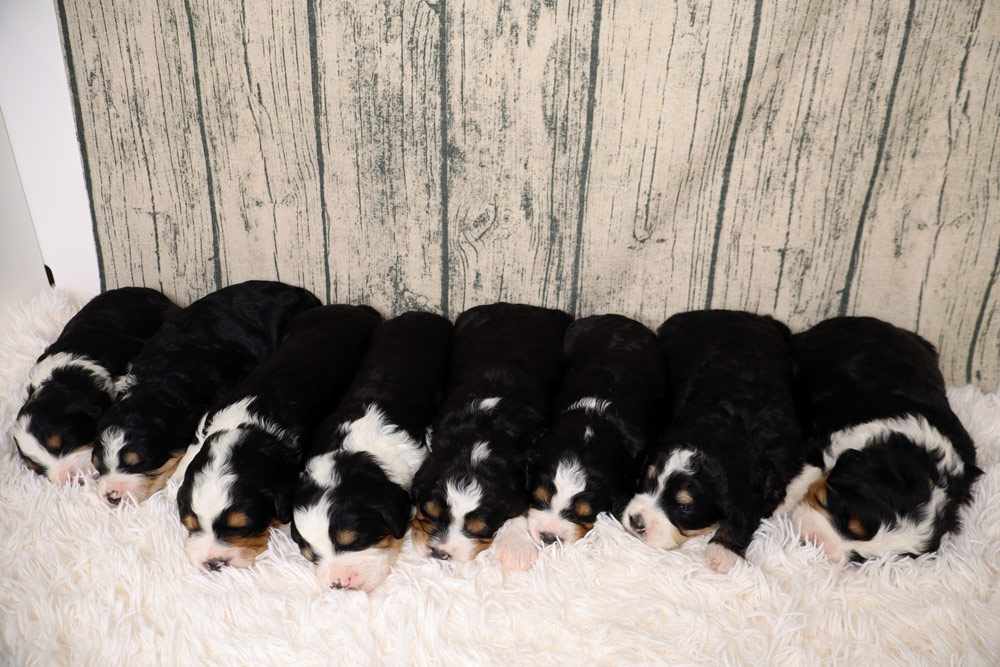 Every Blue Diamond Bernedoodle puppy goes through Early Neurological Stimulation (ENS). ENS is performed from day 3 to day 16 of the puppies life to get our puppies desensitized to human touch as well accustomed to different environments.  All Blue Diamond Bernedoodle puppies are temperament tested by our Professional Puppy Trainer, Kimberly. She then writes each puppy’s individual descriptions based on their  own unique temperament.