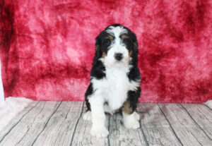 Our Standard Bernedoodle puppies are all F1 – meaning 1st generation- puppies. All moms are purebred Bernese Mountain dogs. Dads to the puppies are Standard poodles. A standard-sized Bernedoodle can weigh 60-90 pounds and be 27-30 inches tall as an adult. Their life expectancy is 12-18 years.