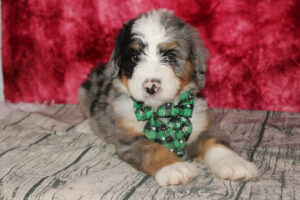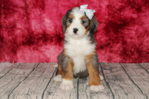 Our Standard Bernedoodle puppies are all F1 – meaning 1st generation- puppies. All moms are purebred Bernese Mountain dogs. Dads to the puppies are Standard poodles. A standard-sized Bernedoodle can weigh 60-90 pounds and be 27-30 inches tall as an adult. Their life expectancy is 12-18 years.