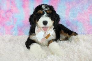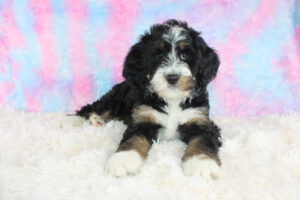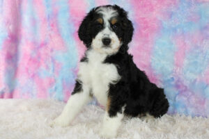 Our Standard Bernedoodle puppies are all F1 – meaning 1st generation- puppies. All moms are purebred Bernese Mountain dogs. Dads to the puppies are Standard poodles. A standard-sized Bernedoodle can weigh 60-90 pounds and be 27-30 inches tall as an adult. Their life expectancy is 12-18 years.