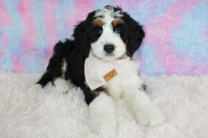 Potty training is typically pretty easy with consistency and patience. When choosing this breed please take into consideration- will you have the required amount of time on hand that this breed needs? A Bernedoodle is a good choice for a family that is not super active. They need their daily exercise but are more medium-energy dogs. They are content to cuddle and stay by their owner’s side.