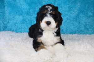 Potty training is typically pretty easy with consistency and patience. When choosing this breed please take into consideration- will you have the required amount of time on hand that this breed needs? A Bernedoodle is a good choice for a family that is not super active. They need their daily exercise but are more medium-energy dogs. They are content to cuddle and stay by their owner’s side.