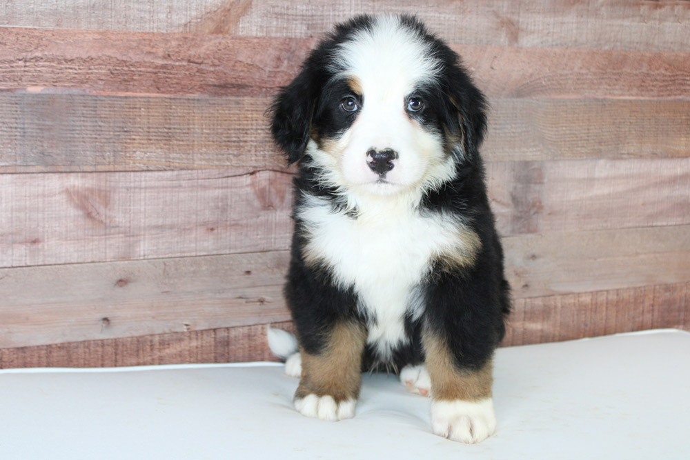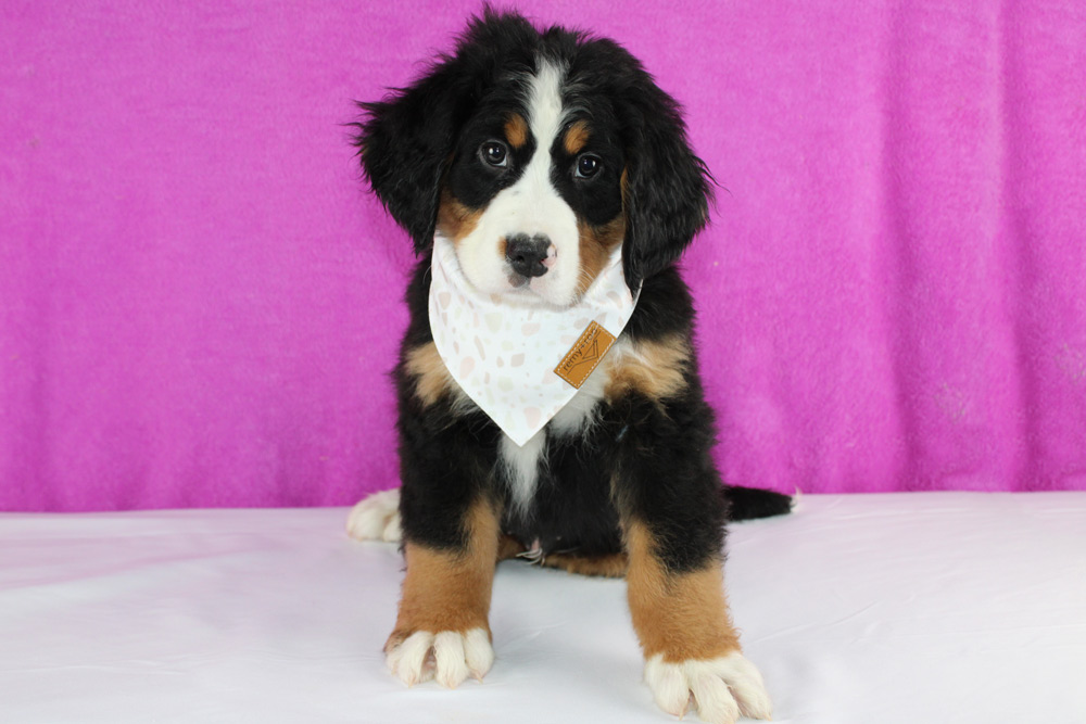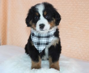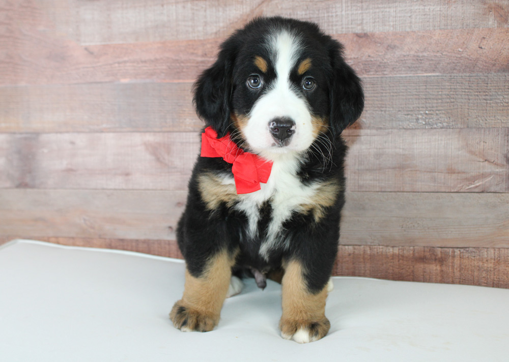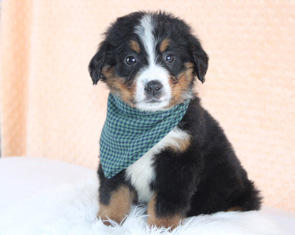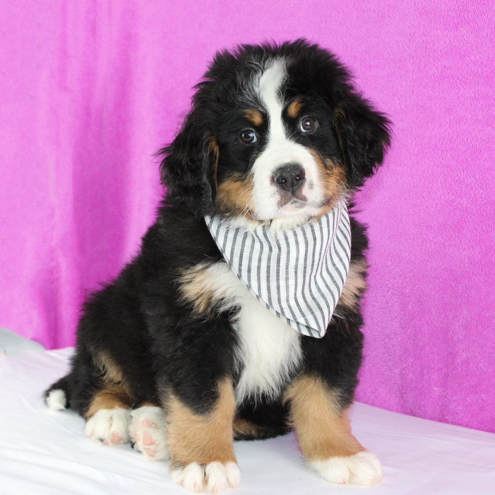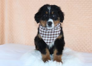 Our Bernese Mountain Dogs are known for their loving, loyal, and gentle personalities. They are sometimes called a gentle giant. They very much live up to that term. A Berner is highly trainable and makes wonderful family pets. Because of their loyal nature, they also make great service dogs. A Bernese Mountain Dog requires at least 30 minutes of daily exercise to stay physically and mentally fit. Also, a moderate-protein diet will keep your puppy from growing too rapidly. Growing too fast can cause strain on the muscles and tendons and could be harmful to your puppy. Bernese Mountain Dogs tend to be prolific shedders but this can be limited with regular bathing and frequent brushing of their coat. In summary, Bernese Mountain Dogs are very devoted to their humans and make great companions for life!