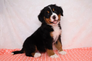 Our Bernese Mountain Dogs are known for their loving, loyal, and gentle personalities. They are sometimes called a gentle giant. They very much live up to that term. A Berner is highly trainable and makes wonderful family pets. Because of their loyal nature, they also make great service dogs. A Bernese Mountain Dog requires at least 30 minutes of daily exercise to stay physically and mentally fit. Also, a moderate-protein diet will keep your puppy from growing too rapidly. Growing too fast can cause strain on the muscles and tendons and could be harmful to your puppy. Bernese Mountain Dogs tend to be prolific shedders but this can be limited with regular bathing and frequent brushing of their coat. In summary, Bernese Mountain Dogs are very devoted to their humans and make great companions for life!