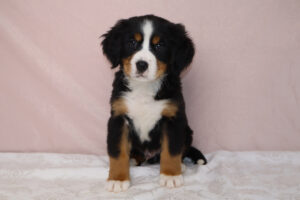 Our Bernese Mountain Dogs are known for their loving, loyal, and gentle personalities. They are sometimes called a gentle giant. They very much live up to that term. A Berner is highly trainable and makes wonderful family pets. Because of their loyal nature, they also make great service dogs. A Bernese Mountain Dog requires at least 30 minutes of daily exercise to stay physically and mentally fit. Also, a moderate-protein diet will keep your puppy from growing too rapidly. Growing too fast can cause strain on the muscles and tendons and could be harmful to your puppy. Bernese Mountain Dogs tend to be prolific shedders but this can be limited with regular bathing and frequent brushing of their coat. In summary, Bernese Mountain Dogs are very devoted to their humans and make great companions for life!