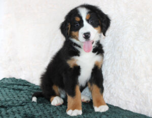 Our Bernese Mountain Dogs are known for their loving, loyal, and gentle personalities. They are sometimes called a gentle giant. They very much live up to that term. A Berner is highly trainable and makes wonderful family pets. Because of their loyal nature, they also make great service dogs. A Bernese Mountain Dog requires at least 30 minutes of daily exercise to stay physically and mentally fit. Also, a moderate-protein diet will keep your puppy from growing too rapidly. Growing too fast can cause strain on the muscles and tendons and could be harmful to your puppy. Bernese Mountain Dogs tend to be prolific shedders but this can be limited with regular bathing and frequent brushing of their coat. In summary, Bernese Mountain Dogs are very devoted to their humans and make great companions for life!