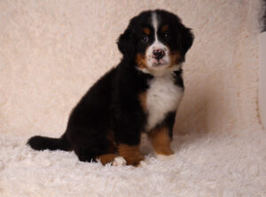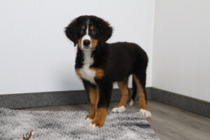 Our Bernese Mountain Dogs are known for their loving, loyal, and gentle personalities. They are sometimes called a gentle giant. They very much live up to that term. A Berner is highly trainable and makes wonderful family pets. Because of their loyal nature, they also make great service dogs. A Bernese Mountain Dog requires at least 30 minutes of daily exercise to stay physically and mentally fit. Also, a moderate-protein diet will keep your puppy from growing too rapidly. Growing too fast can cause strain on the muscles and tendons and could be harmful to your puppy. Bernese Mountain Dogs tend to be prolific shedders but this can be limited with regular bathing and frequent brushing of their coat. In summary, Bernese Mountain Dogs are very devoted to their humans and make great companions for life!