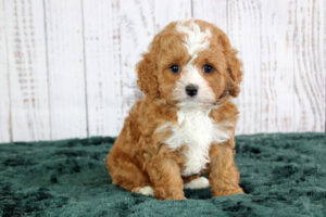 Our Cavapoos have a sweet, calm, and loving temperament. They have a medium energy level. This is a great breed if you are looking for an apartment dog or for first-time dog owners as they are very loyal and social. Potty training is normally easy with consistency. They are a good choice for all ages and therefore make great service dogs. Our Cavapoos range in sizes of 12-20 pounds and are 9-12 inches tall. Their life expectancy is 11-16 years.