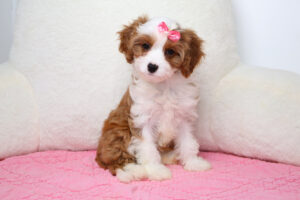 Our Designer Cavapoo puppies are F1 Variations– meaning a 1st generation cross – or an F1b-meaning a 2nd generation hybrid. An F1 Cavapoo is a Purebred King Charles Cavalier bred to either a Purebred Mini or Toy poodle Male. An F1b puppy consists of an F1 Cavapoo female bred to either a Toy or Mini Poodle. Both hybrids have a very similar temperament although an F1b may be more active as they have more of the poodle genetics. There is no major difference in male versus female puppies.
