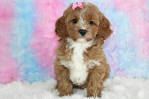 Our Designer Cavapoo puppies are F1 Variations– meaning a 1st generation cross – or an F1b-meaning a 2nd generation hybrid. An F1 Cavapoo is a Purebred King Charles Cavalier bred to either a Purebred Mini or Toy poodle Male. An F1b puppy consists of an F1 Cavapoo female bred to either a Toy or Mini Poodle. Both hybrids have a very similar temperament although an F1b may be more active as they have more of the poodle genetics. There is no major difference in male versus female puppies.