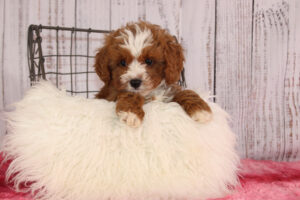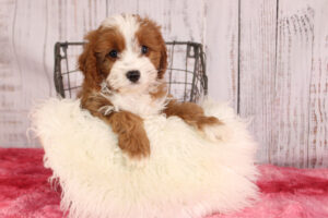 Our Designer Cavapoo puppies are F1 Variations– meaning a 1st generation cross – or an F1b-meaning a 2nd generation hybrid. An F1 Cavapoo is a Purebred King Charles Cavalier bred to either a Purebred Mini or Toy poodle Male. An F1b puppy consists of an F1 Cavapoo female bred to either a Toy or Mini Poodle. Both hybrids have a very similar temperament although an F1b may be more active as they have more of the poodle genetics. There is no major difference in male versus female puppies.