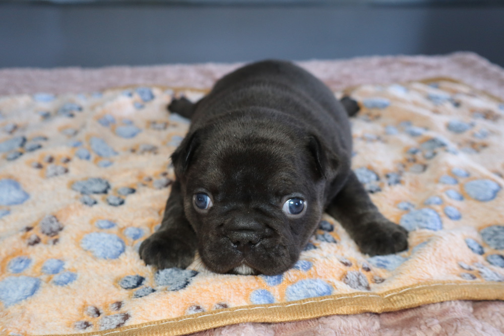 Every Blue Diamond Frenchie puppy goes through Early Neurological Stimulation (ENS). ENS is performed from day 3 to day 16 of the puppies life to get our puppies desensitized to human touch as well accustomed to different environments.  All Blue Diamond French Bulldog puppies are temperament tested by our Professional Puppy Trainer, Kimberly. She then writes each puppy’s individual descriptions based on their  own unique temperament.