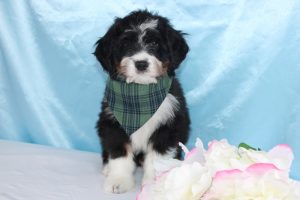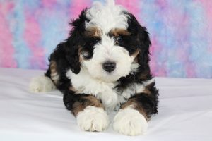 The famous Mini Bernedoodle crossbreed is a mix between a mini poodle or toy poodle and the legendary Bernese Mountain Dog breed. Mini Bernedoodle Puppies offer the best traits and characteristics of both the Mini Poodle and Bernese Mountain dog. From the toy or mini poodle side, they get low shedding, hypoallergenic coats, intelligence, and a more laid-back temperament and energy level. From the Bernese Mountain Dog side, they get loyalty, Friendliness, and playful attitudes. If you’re looking for a dog similar to the Bernese mountain dog but want a smaller more hypoallergenic dog then a mini bernedoodle puppy is a great choice. Also, most bernedoodles are dry-mouthed and don’t drool like traditional Bernese Mountain dogs. This breed is usually non-aggressive, gentle, friendly, and makes great family pets.