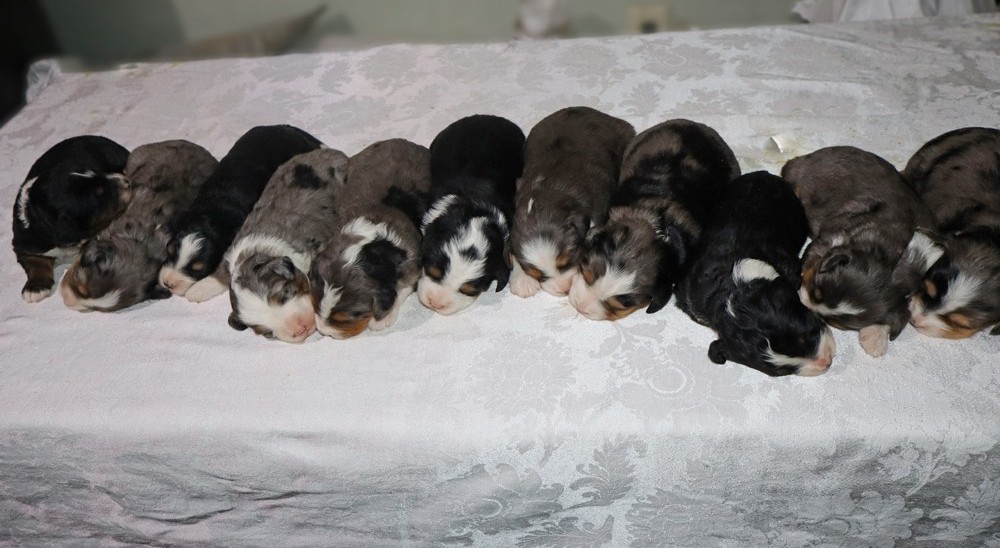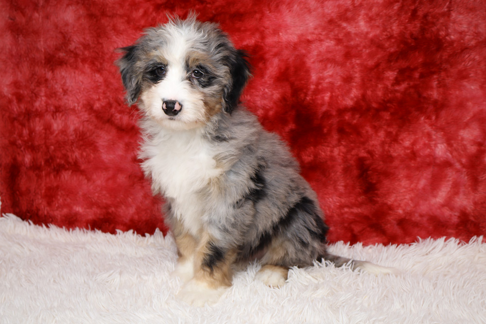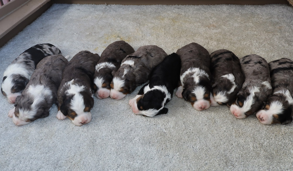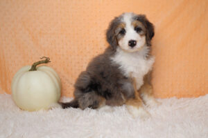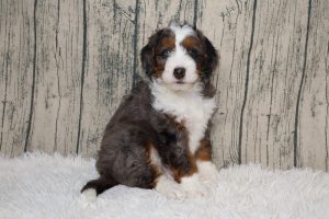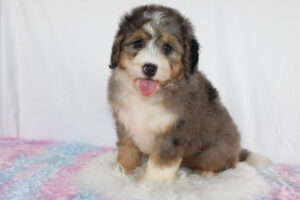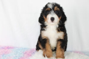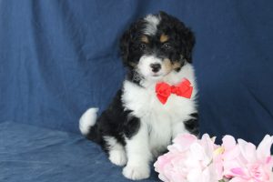 Looking for a Bernedoodle but want a smaller size? Our Mini Bernedoodles may be just what you are looking for! All puppies are F1 – meaning 1st generation – puppies. All moms are purebred Bernese Mountain dogs. Dads to the puppies are Toy or Mini Poodles. A mini Bernedoodle can weigh 25-55 pounds and be 18-22 inches tall as an adult. Their life expectancy is 12-18 years. A mini Bernedoodle typically has a longer lifespan than a Standard Bernedoodle due to being smaller in size.