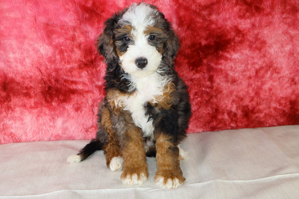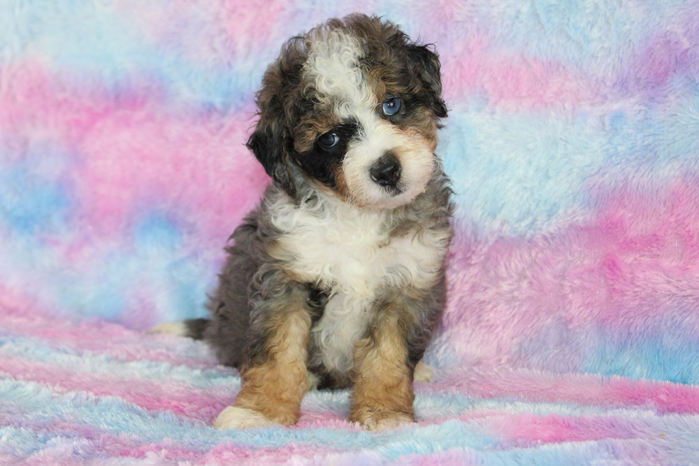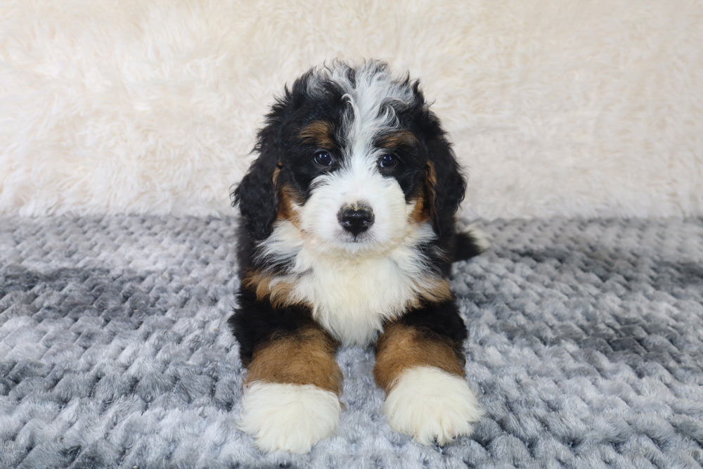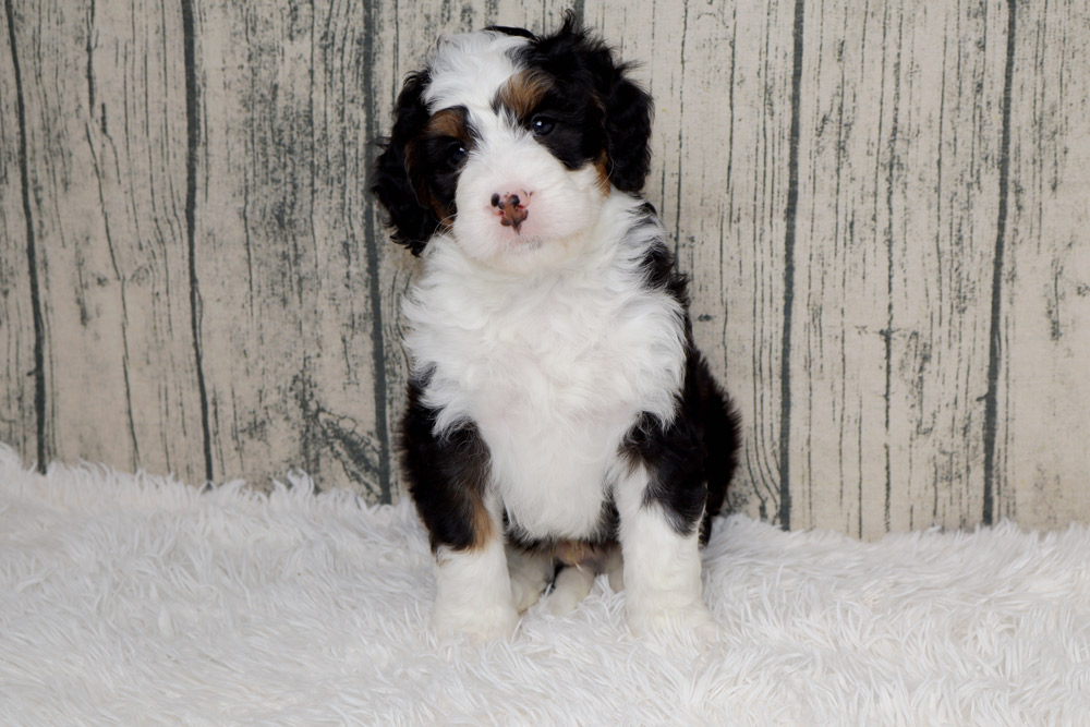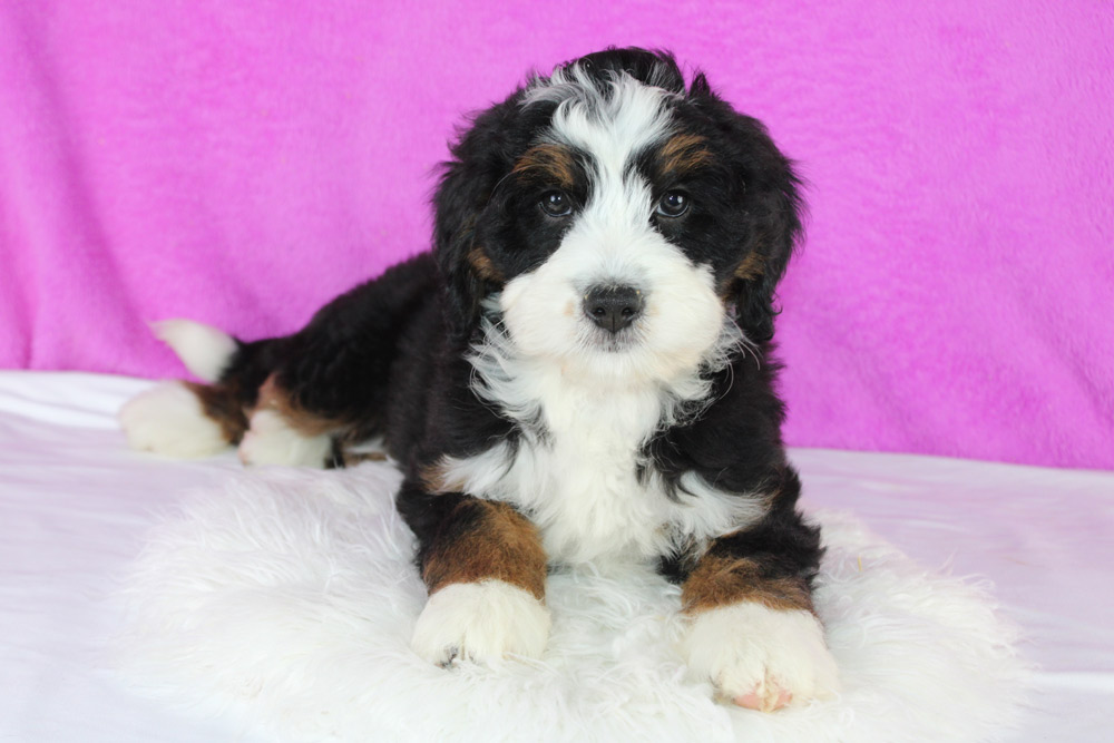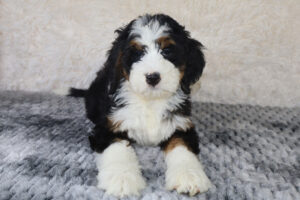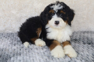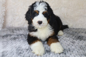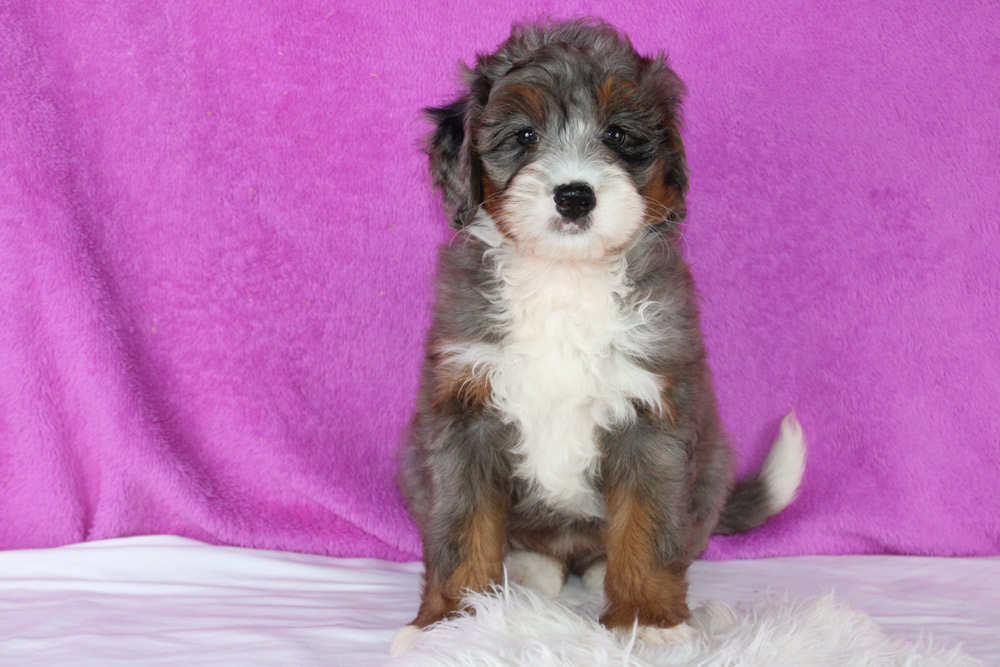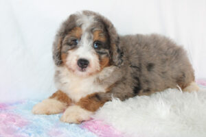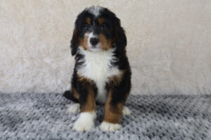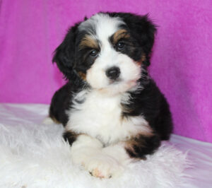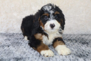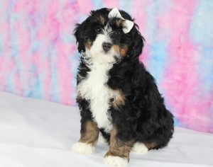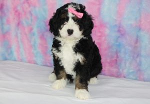 F1 Mini Bernedoodle – is considered a first-generation Mini bernedoodle, and has a purebred Mini or Toy Poodle parent and a purebred Bernese Mountain Dog as a parent. The puppy will be 50 percent Mini or Toy Poodle and 50 percent Bernese Mountain Dog.