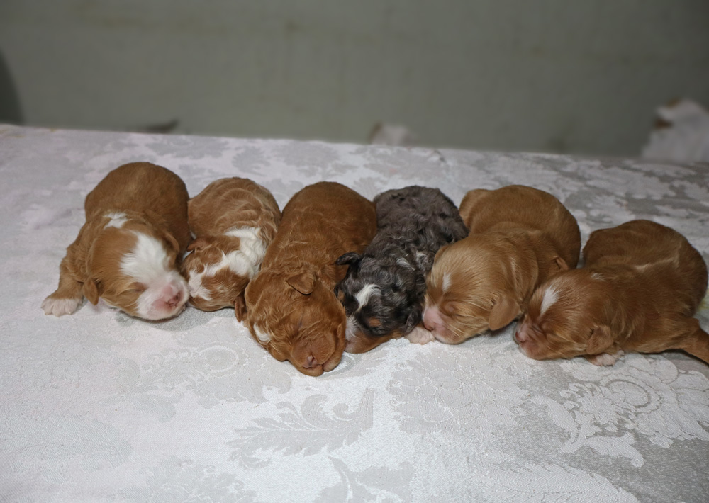 Our puppies have a wavy to curly hair coat thus they require a significant amount of grooming to keep their coat from getting matted. They should be on a 12-16 week grooming schedule. After losing the puppy fur in the first year of your puppy’s life, shedding is very minimal and they are considered to be a hypoallergenic dog.