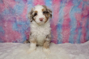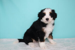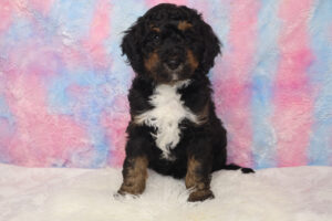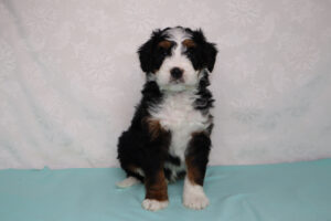 The famous Mini Bernedoodle crossbreed is a mix between a mini poodle or toy poodle and the legendary Bernese Mountain Dog breed.  Mini Bernedoodle Puppies offer the best traits and characteristics of both the Mini Poodle and Bernese Mountain dog.  From the toy or mini poodle side, they get low shedding, hypoallergenic coats, intelligence, and a more laid-back temperament and energy level.   From the Bernese Mountain Dog side, they get loyalty, Friendliness, and playful attitudes.   If you’re looking for a dog similar to the Bernese mountain dog but want a smaller more hypoallergenic dog then a mini bernedoodle puppy is a great choice. Also, most bernedoodles are dry-mouthed and don’t drool like traditional Bernese Mountain dogs.  This breed is usually non-aggressive, gentle, friendly, and makes great family pets.