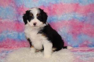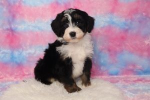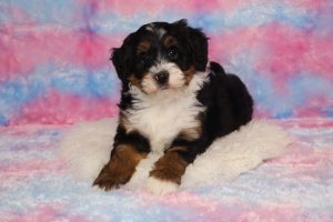 The famous Mini Bernedoodle crossbreed is a mix between a mini poodle or toy poodle and the legendary Bernese Mountain Dog breed.  Mini Bernedoodle Puppies offer the best traits and characteristics of both the Mini Poodle and Bernese Mountain dog.  From the toy or mini poodle side, they get low shedding, hypoallergenic coats, intelligence, and a more laid-back temperament and energy level.   From the Bernese Mountain Dog side, they get loyalty, Friendliness, and playful attitudes.   If you’re looking for a dog similar to the Bernese mountain dog but want a smaller more hypoallergenic dog then a mini bernedoodle puppy is a great choice. Also, most bernedoodles are dry-mouthed and don’t drool like traditional Bernese Mountain dogs.  This breed is usually non-aggressive, gentle, friendly, and makes great family pets.