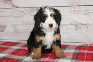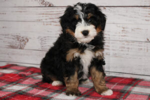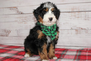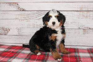 Looking for a Bernedoodle but want a smaller size? Our Mini Bernedoodles may be just what you are looking for! All puppies are F1 – meaning 1st generation – puppies. All moms are purebred Bernese Mountain dogs. Dads to the puppies are Toy or Mini Poodles. A mini Bernedoodle can weigh 25-55 pounds and be 18-22 inches tall as an adult. Their life expectancy is 12-18 years. A mini Bernedoodle typically has a longer lifespan than a Standard Bernedoodle due to being smaller in size.