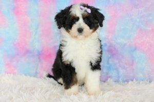 Looking for a Bernedoodle but want a smaller size? Our Mini Bernedoodles may be just what you are looking for! All puppies are F1 – meaning 1st generation – puppies. All moms are purebred Bernese Mountain dogs. Dads to the puppies are Toy or Mini Poodles. A mini Bernedoodle can weigh 25-55 pounds and be 18-22 inches tall as an adult. Their life expectancy is 12-18 years. A mini Bernedoodle typically has a longer lifespan than a Standard Bernedoodle due to being smaller in size.