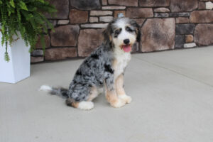 Looking for a Bernedoodle but want a smaller size? Our Mini Bernedoodles may be just what you are looking for! All puppies are F1 – meaning 1st generation – puppies. All moms are purebred Bernese Mountain dogs. Dads to the puppies are Toy or Mini Poodles. A mini Bernedoodle can weigh 25-55 pounds and be 18-22 inches tall as an adult. Their life expectancy is 12-18 years. A mini Bernedoodle typically has a longer lifespan than a Standard Bernedoodle due to being smaller in size.