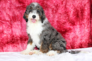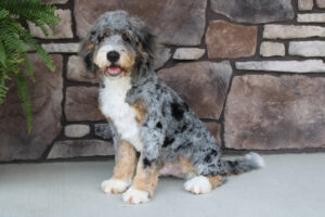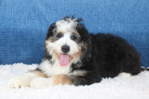 The famous Mini Bernedoodle crossbreed is a mix between a mini poodle or toy poodle and the legendary Bernese Mountain Dog breed.  Mini Bernedoodle Puppies offer the best traits and characteristics of both the Mini Poodle and Bernese Mountain dog.  From the toy or mini poodle side, they get low shedding, hypoallergenic coats, intelligence, and a more laid-back temperament and energy level.   From the Bernese Mountain Dog side, they get loyalty, Friendliness, and playful attitudes.   If you’re looking for a dog similar to the Bernese mountain dog but want a smaller more hypoallergenic dog then a mini bernedoodle puppy is a great choice. Also, most bernedoodles are dry-mouthed and don’t drool like traditional Bernese Mountain dogs.  This breed is usually non-aggressive, gentle, friendly, and makes great family pets.