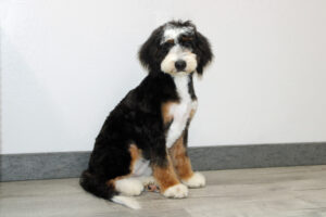 F1 Mini Bernedoodle – is considered a first-generation Mini bernedoodle, and has a purebred Mini or Toy Poodle parent and a purebred Bernese Mountain Dog as a parent.  The puppy will be 50 percent Mini or Toy Poodle and 50 percent Bernese Mountain Dog.