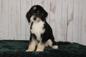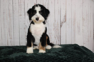 Looking for a Bernedoodle but want a smaller size? Our Mini Bernedoodles may be just what you are looking for! All puppies are F1 – meaning 1st generation – puppies. All moms are purebred Bernese Mountain dogs. Dads to the puppies are Toy or Mini Poodles. A mini Bernedoodle can weigh 25-55 pounds and be 18-22 inches tall as an adult. Their life expectancy is 12-18 years. A mini Bernedoodle typically has a longer lifespan than a Standard Bernedoodle due to being smaller in size.