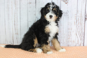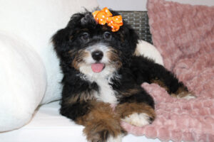 Looking for a Bernedoodle but want a smaller size? Our Mini Bernedoodles may be just what you are looking for! All puppies are F1 – meaning 1st generation – puppies. All moms are purebred Bernese Mountain dogs. Dads to the puppies are Toy or Mini Poodles. A mini Bernedoodle can weigh 25-55 pounds and be 18-22 inches tall as an adult. Their life expectancy is 12-18 years. A mini Bernedoodle typically has a longer lifespan than a Standard Bernedoodle due to being smaller in size.