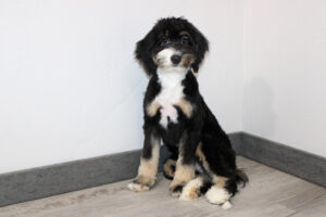 F1 Mini Bernedoodle – is considered a first-generation Mini bernedoodle, and has a purebred Mini or Toy Poodle parent and a purebred Bernese Mountain Dog as a parent.  The puppy will be 50 percent Mini or Toy Poodle and 50 percent Bernese Mountain Dog.