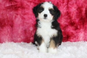 Looking for a Bernedoodle but want a smaller size? Our Mini Bernedoodles may be just what you are looking for! All puppies are F1 – meaning 1st generation – puppies. All moms are purebred Bernese Mountain dogs. Dads to the puppies are Toy or Mini Poodles. A mini Bernedoodle can weigh 25-55 pounds and be 18-22 inches tall as an adult. Their life expectancy is 12-18 years. A mini Bernedoodle typically has a longer lifespan than a Standard Bernedoodle due to being smaller in size.