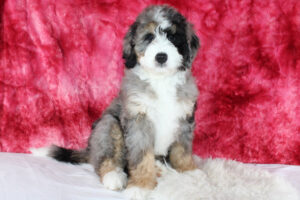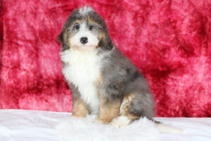 Looking for a Bernedoodle but want a smaller size? Our Mini Bernedoodles may be just what you are looking for! All puppies are F1 – meaning 1st generation – puppies. All moms are purebred Bernese Mountain dogs. Dads to the puppies are Toy or Mini Poodles. A mini Bernedoodle can weigh 25-55 pounds and be 18-22 inches tall as an adult. Their life expectancy is 12-18 years. A mini Bernedoodle typically has a longer lifespan than a Standard Bernedoodle due to being smaller in size.