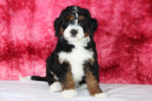 Looking for a Bernedoodle but want a smaller size? Our Mini Bernedoodles may be just what you are looking for! All puppies are F1 – meaning 1st generation – puppies. All moms are purebred Bernese Mountain dogs. Dads to the puppies are Toy or Mini Poodles. A mini Bernedoodle can weigh 25-55 pounds and be 18-22 inches tall as an adult. Their life expectancy is 12-18 years. A mini Bernedoodle typically has a longer lifespan than a Standard Bernedoodle due to being smaller in size.
