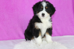 Looking for a Bernedoodle but want a smaller size? Our Mini Bernedoodles may be just what you are looking for! All puppies are F1 – meaning 1st generation – puppies. All moms are purebred Bernese Mountain dogs. Dads to the puppies are Toy or Mini Poodles. A mini Bernedoodle can weigh 25-55 pounds and be 18-22 inches tall as an adult. Their life expectancy is 12-18 years. A mini Bernedoodle typically has a longer lifespan than a Standard Bernedoodle due to being smaller in size.