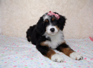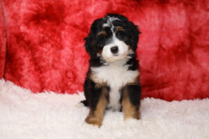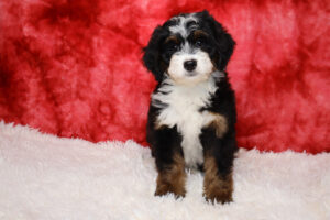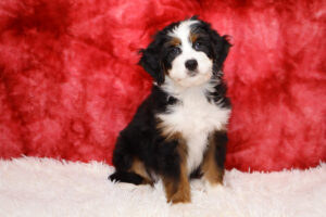 Looking for a Bernedoodle but want a smaller size? Our Mini Bernedoodles may be just what you are looking for! All puppies are F1 – meaning 1st generation – puppies. All moms are purebred Bernese Mountain dogs. Dads to the puppies are Toy or Mini Poodles. A mini Bernedoodle can weigh 25-55 pounds and be 18-22 inches tall as an adult. Their life expectancy is 12-18 years. A mini Bernedoodle typically has a longer lifespan than a Standard Bernedoodle due to being smaller in size.