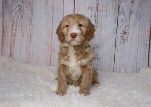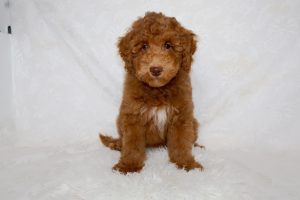 Most mini Goldendoodles favor the poodle side of the mix and usually have shorter wavy/curlier hair than a poodle.  Others can have more of a shaggy coat like that of a Golden retriever The colors of mini doodles vary and get inherited from both of the puppy’s parents.  Some can be solid colored and some are multi-colored with patterns.   The most prominent colors of mini Goldendoodles are Brown, Cream, Apricot, Red, White, and Golden colors.
