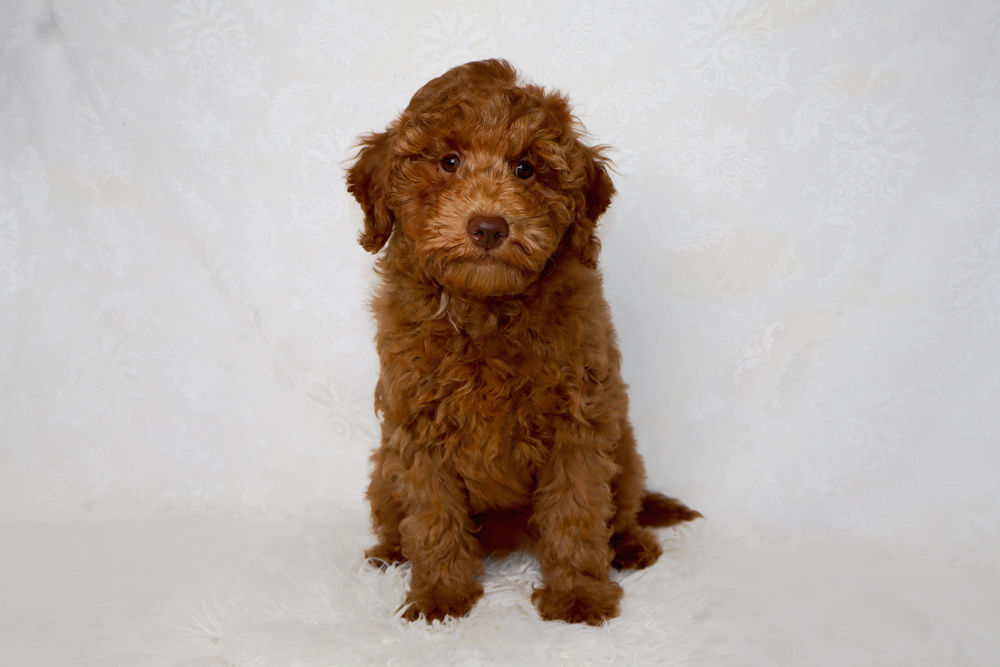 An F1bb is a third-generation Mini Goldendoodle with Mom being an F1b Goldendoodle and Dad a mini Poodle. Their hair coat is that of a poodle as they are more poodle than Retriever. They are guaranteed hypoallergenic and no shedding. They should be on a 6-8 week grooming schedule. They have loving and super intelligent personalities but tend to have more energy. This breed is also smaller in size, they make great apartment dogs. They vary in size from 15-25 pounds and are 14-16 inches tall.