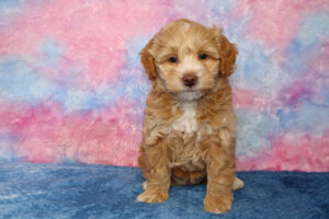 Most mini Goldendoodles favor the poodle side of the mix and usually have shorter wavy/curlier hair than a poodle.  Others can have more of a shaggy coat like that of a Golden retriever The colors of mini doodles vary and get inherited from both of the puppy’s parents.  Some can be solid colored and some are multi-colored with patterns.   The most prominent colors of mini Goldendoodles are Brown, Cream, Apricot, Red, White, and Golden colors.