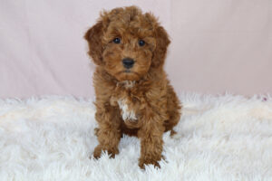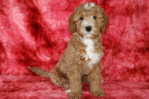 Most mini Goldendoodles favor the poodle side of the mix and usually have shorter wavy/curlier hair than a poodle.  Others can have more of a shaggy coat like that of a Golden retriever The colors of mini doodles vary and get inherited from both of the puppy’s parents.  Some can be solid colored and some are multi-colored with patterns.   The most prominent colors of mini Goldendoodles are Brown, Cream, Apricot, Red, White, and Golden colors.