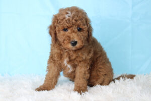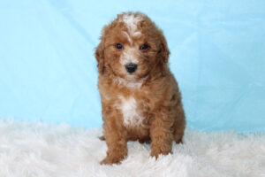 Most mini Goldendoodles favor the poodle side of the mix and usually have shorter wavy/curlier hair than a poodle.  Others can have more of a shaggy coat like that of a Golden retriever The colors of mini doodles vary and get inherited from both of the puppy’s parents.  Some can be solid colored and some are multi-colored with patterns.   The most prominent colors of mini Goldendoodles are Brown, Cream, Apricot, Red, White, and Golden colors.