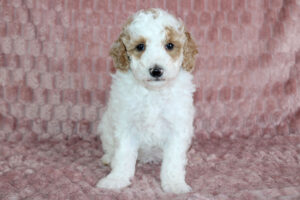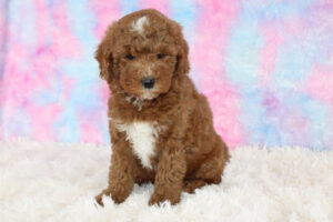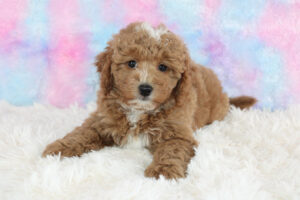 Most mini Goldendoodles favor the poodle side of the mix and usually have shorter wavy/curlier hair than a poodle.  Others can have more of a shaggy coat like that of a Golden retriever The colors of mini doodles vary and get inherited from both of the puppy’s parents.  Some can be solid colored and some are multi-colored with patterns.   The most prominent colors of mini Goldendoodles are Brown, Cream, Apricot, Red, White, and Golden colors.