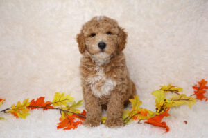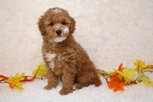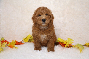 Most mini Goldendoodles favor the poodle side of the mix and usually have shorter wavy/curlier hair than a poodle.  Others can have more of a shaggy coat like that of a Golden retriever The colors of mini doodles vary and get inherited from both of the puppy’s parents.  Some can be solid colored and some are multi-colored with patterns.   The most prominent colors of mini Goldendoodles are Brown, Cream, Apricot, Red, White, and Golden colors.