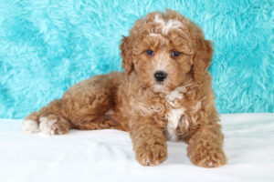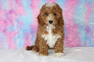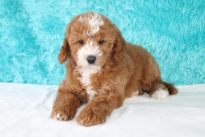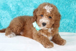 Most mini Goldendoodles favor the poodle side of the mix and usually have shorter wavy/curlier hair than a poodle.  Others can have more of a shaggy coat like that of a Golden retriever The colors of mini doodles vary and get inherited from both of the puppy’s parents.  Some can be solid colored and some are multi-colored with patterns.   The most prominent colors of mini Goldendoodles are Brown, Cream, Apricot, Red, White, and Golden colors.