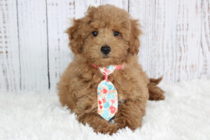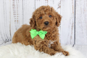 Most mini Goldendoodles favor the poodle side of the mix and usually have shorter wavy/curlier hair than a poodle.  Others can have more of a shaggy coat like that of a Golden retriever The colors of mini doodles vary and get inherited from both of the puppy’s parents.  Some can be solid colored and some are multi-colored with patterns.   The most prominent colors of mini Goldendoodles are Brown, Cream, Apricot, Red, White, and Golden colors.