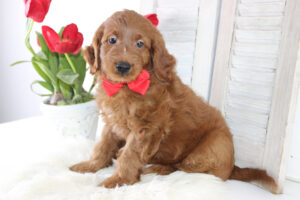 They have loving and affectionate personalities like the Golden Retriever but also have the Superintelligence and hypoallergenic traits of the poodle.   They are loyal, very eager to please, and make great companions for families or individuals.  With their smaller size, they make great apartment dogs.   They get very attached to people that spend time with them and love to be close to them.  As with all dogs, a dog’s temperament is a direct result of the type of training, socialization, and overall time spent with your puppy.