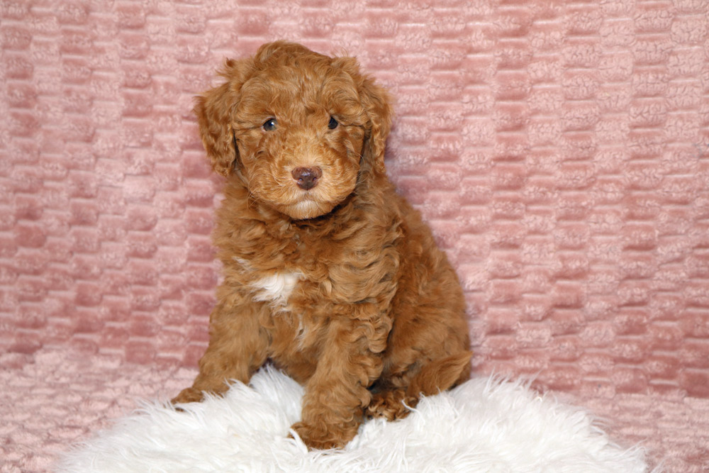 The Mini Goldendoodle is a boutique or designer mixed breed dog that is a mix between a Golden Retriever and a Miniature or Toy Poodle.  This breed displays the best traits of both breeds.   They are very intelligent, loyal, and make great pets.  They are great with kids and play well with other pets like cats or other dogs.   Mini Goldendoodles make great therapy dogs or a pet for special needs children.   Through breeding, they can range from low shedding and semi-hypoallergenic to no shedding and Guaranteed Hypoallergenic.