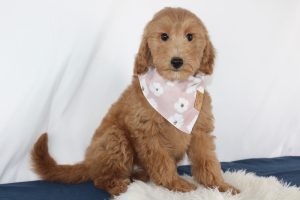 The F1 Mini Goldendoodle Puppies are the first-generation breed. Mom is a Golden Retriever and Dad is a mini poodle. They have a wavy or soft curly hair coat with minimal shedding after they have lost their puppy fur. If you are looking for low maintenance, partially hypoallergenic dog this would be a good choice for you. Their grooming consists of daily brushing to keep the hair from being matted. They should be on a 6-month grooming schedule. They have the even-tempered personality that takes after the Golden Retriever. They vary in size from 20-45 pounds and are 20-24 inches tall.