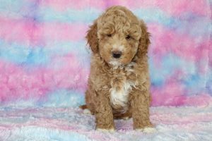Most mini Goldendoodles favor the poodle side of the mix and usually have shorter wavy/curlier hair than a poodle.  Others can have more of a shaggy coat like that of a Golden retriever The colors of mini doodles vary and get inherited from both of the puppy’s parents.  Some can be solid colored and some are multi-colored with patterns.   The most prominent colors of mini Goldendoodles are Brown, Cream, Apricot, Red, White, and Golden colors.