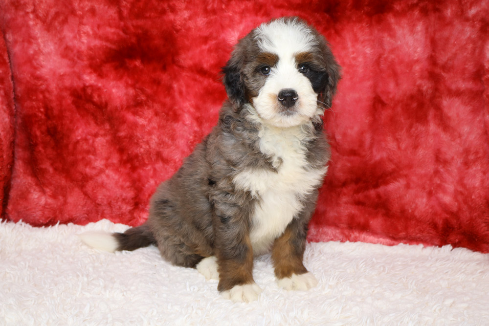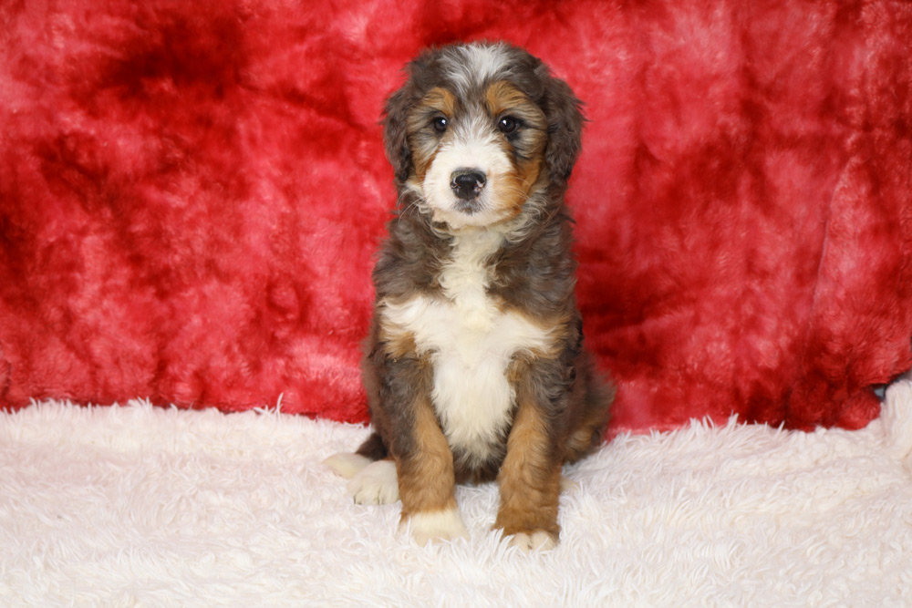 The Micro Bernedoodle carries the same tri-color markings and calm Bernese personality that families love about the breed in a package that works in apartment living. Most Micro Bernedoodles weigh under 20 pounds as adults. That size makes a real difference for families in condos, townhomes, or any living situation where a 70-pound dog isn’t practical. They’re low-shedding, they bond closely to their people, and they don’t need the same exercise volume that the larger Bernedoodle sizes require.