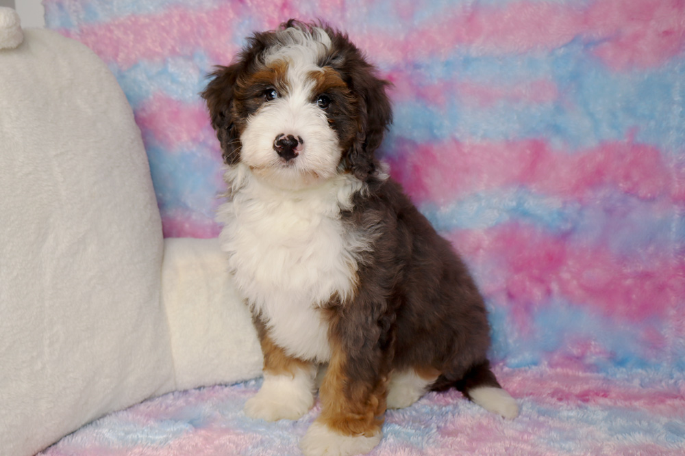 Micro Bernedoodles carry all the Bernedoodle personality in a size that works for any home in a mid-sized city community. Their calm temperament makes them easy around kids of different ages, and the cold months that define this climate turn out to be exactly the kind of weather this breed was built for. They settle in quickly and don't ask for much beyond regular time and attention.